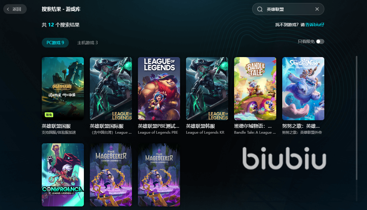 处理好上面的事情,还有网络问题需要解决,这里使用biubiu的加速,可以让国服玩家享受限免的资格,同时付费玩家还能体验国际服加速,让各位自由切换各种服务器,体验高手的感觉。