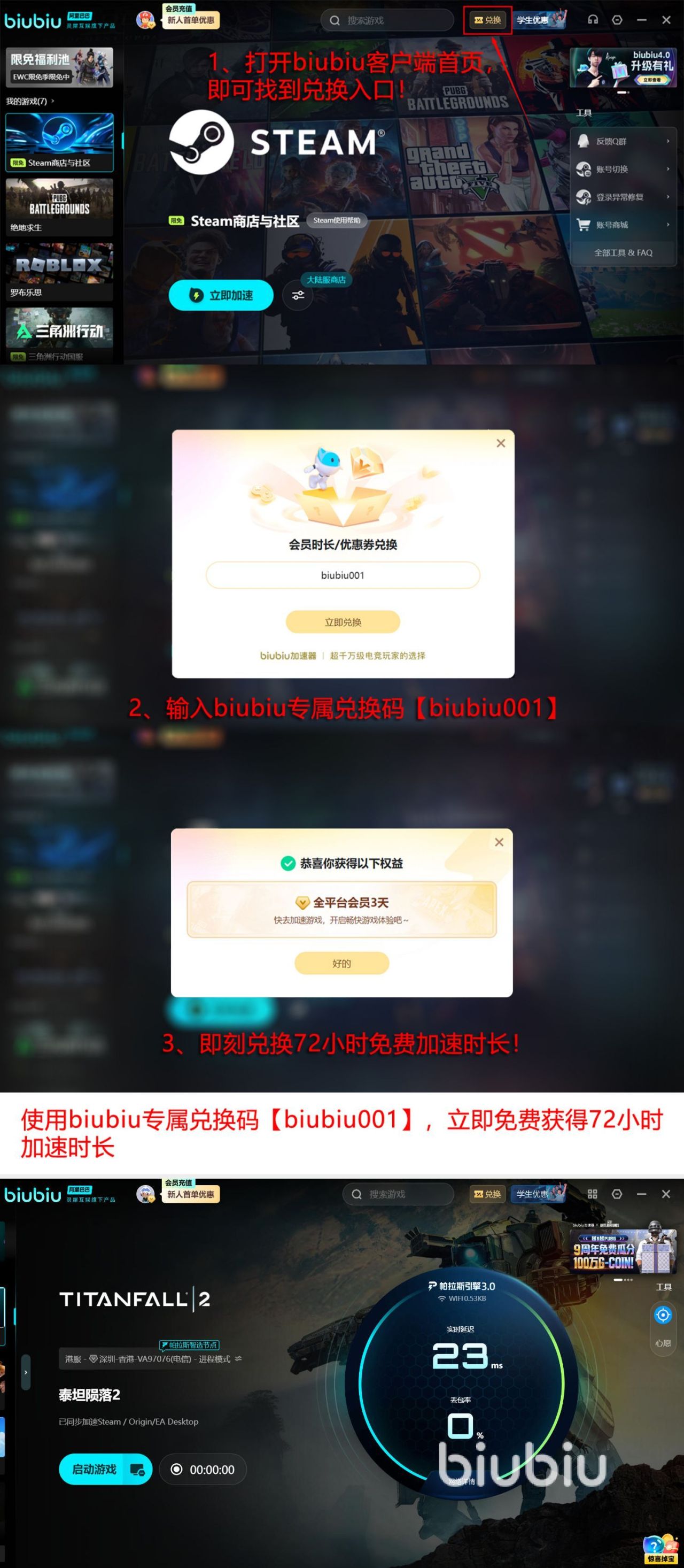 其中就包括阿里巴巴灵犀互娱所拥有的庞大技术加持,自研的帕拉斯3.0引擎,就是在整个行业内非常出色的,在很多的方面都具有出色的技术水平,包括智能选择路线。其实在体验的过程当中,处在高峰时段,玩家数量特别的多,也能够有效减少因此而造成的网络波动比较大的问题,实现弱网对抗,也能够具有流畅的画面。如今的福利,新用户可以通过注册的方式得到24小时加速时长,所有的用户可通过输入【biubiu001】的方式,获得三天的免费加速时长,新用户两种方法都可以使用,最多可以免费加速96个小时。
