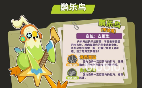 次推英雄——鹦乐鸟。属于功能性团队辅助,核心价值在于持续增益与战场调控。其主动技能可为范围内的队友提供移动速度加成,强化走位机动性与战术转移效率;终极技能生效期间,全体友方单位获得伤害加成与护盾保护,显著提升队伍生存上限与爆发窗口,是组队模式下的关键支援角色。