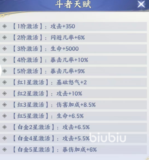 在天赋系统方面,天雷子各阶解锁属性明确且具备阶段性侧重:1阶提升基础攻击350点;2阶增加6%闪避率;3阶提供5000点生命值加成,强化站场容错;4阶与5阶分别提升暴击率10%与9%;进入红品阶段后,红1星解锁基础怒气+2点,加快大招循环;红2星提升10%基础攻击;红3星赋予8.5%伤害加成;后续还可激活6%暴击伤害加成。整套天赋设计兼顾输出节奏、生存韧性与爆发上限,符合火队核心输出位的成长需求。