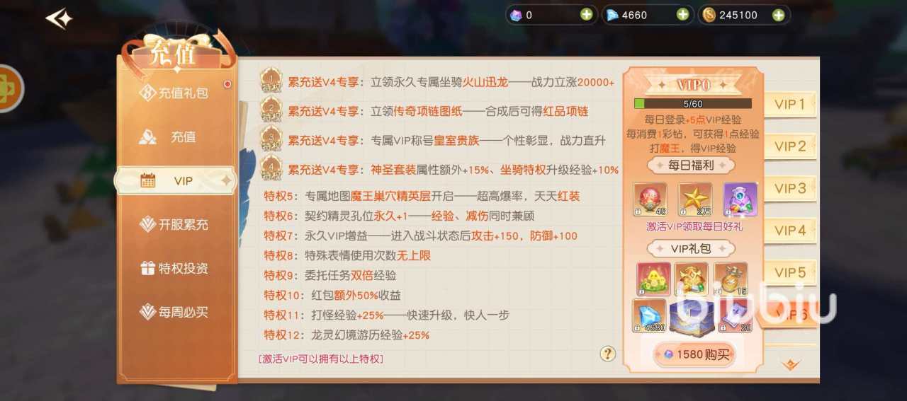 4、每日可领取专属VIP礼包,内含经验药剂、宝石碎片及星砂资源,均为角色养成关键材料。