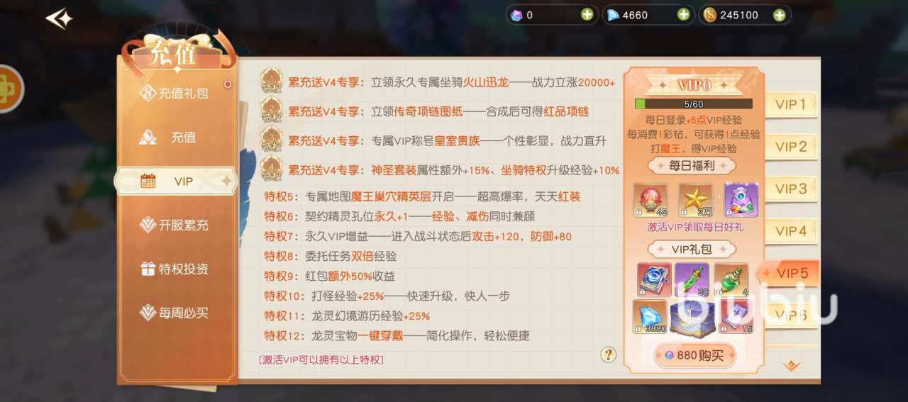 7、每日签到奖励翻倍发放;同时额外获得5点VIP经验值。消费1彩钻即得1点VIP经验值;挑战魔王副本亦可获取VIP经验值。开通后每日可领取:VIP经验道具×45、星砂×20000(星砂为龙骑士间市场交易与拍卖系统通用货币)、VIP宝石礼包×1(内含1级红晶石×1、1级蓝晶石×1)。VIP等级支持进阶,等级越高,解锁特权越丰富——本文所列仅为初始VIP阶段基础权益。