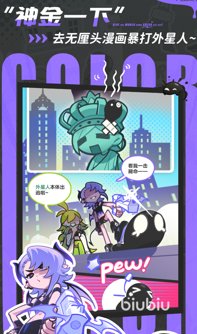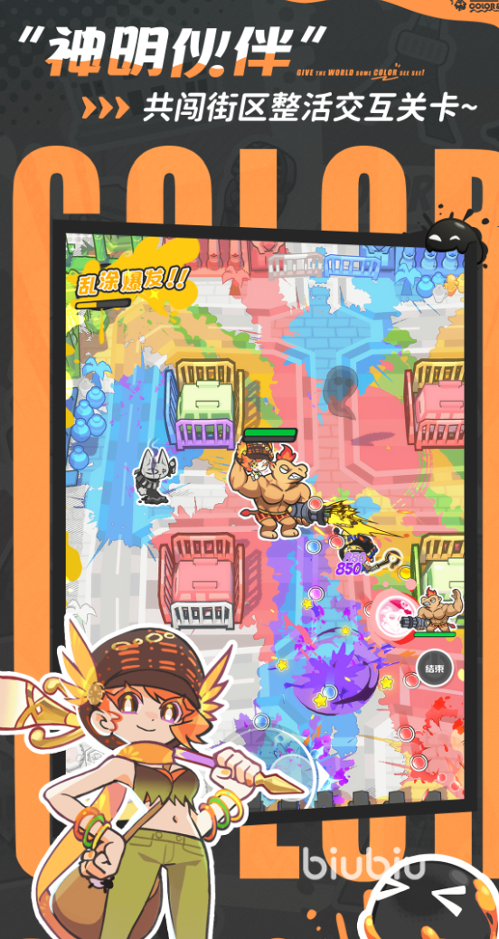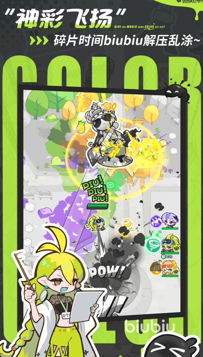 玩法层面,游戏将实时全屏涂绘系统与弹幕射击机制深度耦合:玩家需通过滑动完成区域着色以激活技能,同时躲避敌方弹道并精准输出伤害。每次成功填充指定区域或击破目标,均触发强反馈式视觉特效与音效响应,形成正向激励闭环。叙事采用漫画分镜式呈现,剧情基调以荒诞解构与幽默反讽为主,兼顾轻松感与个性表达,满足泛用户对情绪减压与创意互动的双重需求。