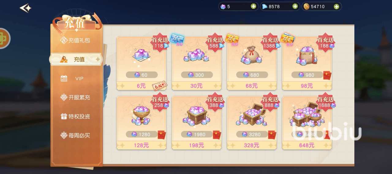 游戏内置多档位充值方案,彩钻兑换比例统一为1元=10彩钻。其中,6元、30元、68元三档额外赠送蓝钻,其余档位仅发放彩钻。以6元档为例:实际到账60彩钻+118蓝钻;30元档对应300彩钻+若干蓝钻;68元档对应680彩钻+若干蓝钻;最高档648元可获基础6480彩钻+1888彩钻额外赠送,总计8368彩钻。该方式适合有明确短期目标(如竞拍、限时抽卡)的玩家。