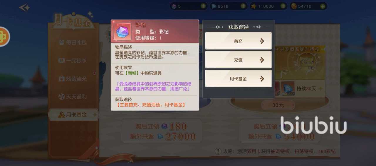 彩钻不可通过日常任务、副本掉落或活动白嫖获得,仅限通过合规充值行为获取。当前游戏内支持的合法途径共三项:首充奖励、阶梯式充值返利、月卡基金计划。三者在成本结构、即时回报与长期效益上各有侧重,需结合玩家自身活跃周期与资源需求进行选择。
