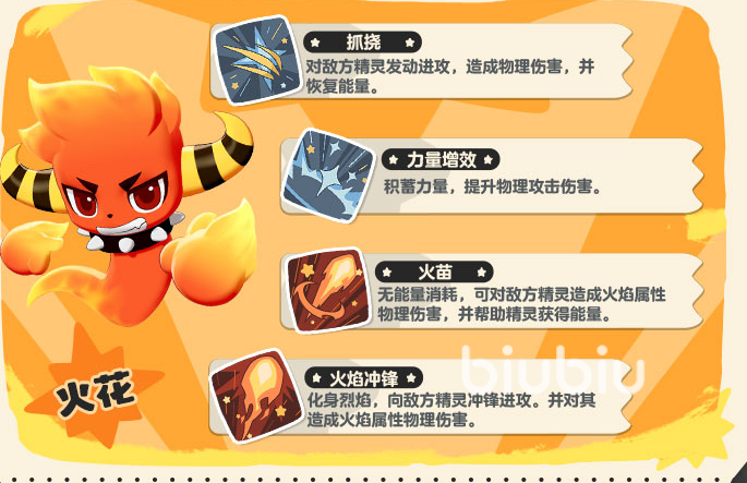 火花拥有火属性专属特性“助燃”——每次成功命中火系技能后,后续火系技能伤害提升,形成越战越猛的爆发循环。该机制在清野怪、速通低阶副本时优势突出,尤其适合偏好快节奏输出、倾向以高伤害压制对手的玩家。其前期技能组具备稳定群攻与单体斩杀能力,配合特性可实现两至三回合内高效解决常规敌人。