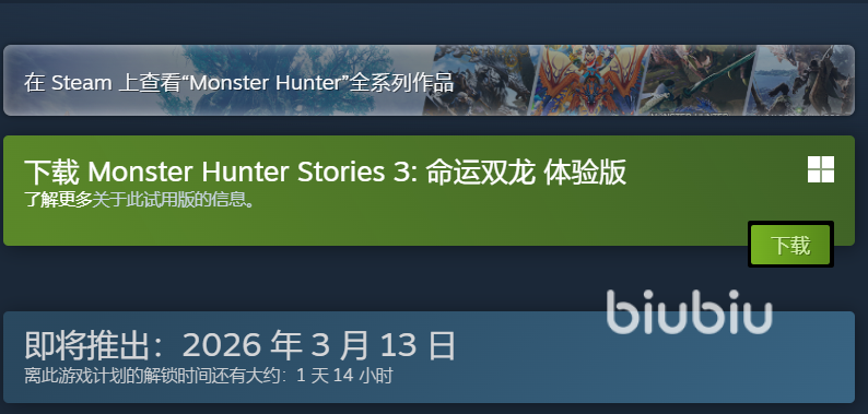 根据Steam平台官方页面公示信息,《怪物猎人物语3:命运双龙》全球同步发售日已正式确认为3月13日。玩家无需漫长等待,即可第一时间进入游戏世界。值得一提的是,官方同步推出免费体验版,涵盖序章流程、基础战斗系统及骑乘机制演示,便于玩家提前熟悉操作逻辑与策略节奏。