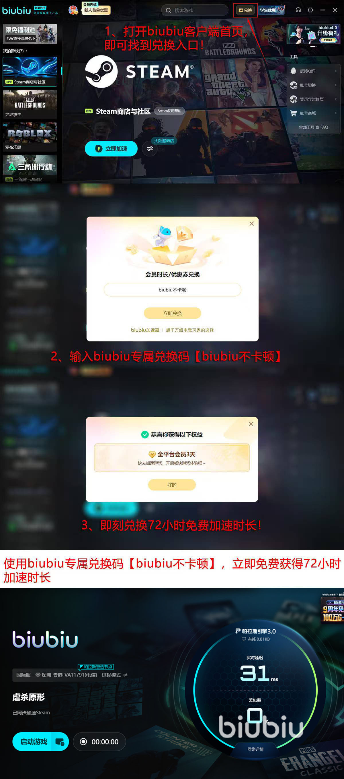 对于《虐杀原形》玩家而言,网络质量是影响游戏体验的核心变量,相较系统兼容性调整(如设置Win7兼容模式或更新显卡驱动),优先优化网络链路更为直接有效。目前,新用户注册即可获得24小时免费加速时长;另可通过口令【biubiu不卡顿】在首页“兑换”区领取72小时体验权限,总计可享96小时无限制加速服务,便于充分验证优化效果。