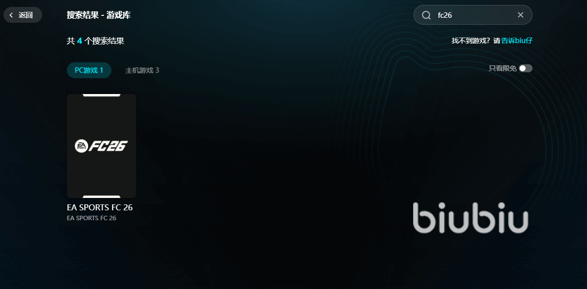 比赛肯定是要有竞争才有意思,打算联机玩,肯定不能少了用biubiu的服务。它的加速对象很多,可服务平台也广,我们不仅能找到pc端的专页,就连各大主机平台也是能享受的,足够丰富。像下面这样直接搜索即可找到,而且还有不同平台供选择。