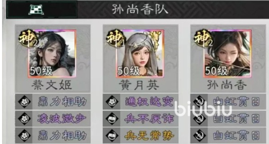 阵容构筑核心在于精准站位与兵种协同。黄月英不可置于追击格,其定位为负面状态施加者;孙尚香必须落位于黄月英的追击格内,同时与蔡文姬互置追击关系,确保技能链式触发。兵种配置方面:黄月英后排部署五斗米祭,提升全队持续作战能力;蔡文姬前方双列布设西凉骑兵,承担前排承伤任务,保障其技能释放稳定性。整套体系高度依赖三位女性武将的机制契合,并需满配金国宝物套装以激活全部增益效果。