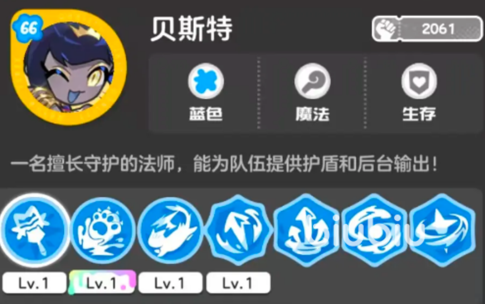 贝斯特归属蓝系法术职业,是团队防御体系的核心构建者。她专注于护盾生成与远程火力支援双重职责,可持续为队友施加高强度物理减伤屏障,显著提升队伍整体承伤能力与持续作战韧性。其主动技能可展开大范围蓝色能量护罩,覆盖全体成员,有效削弱敌方各类攻击的实际伤害。此外,她拥有优秀的机动性,可通过快速位移灵活调整站位,在复杂地形中规避集火、抢占关键输出位置,增强战术容错率。