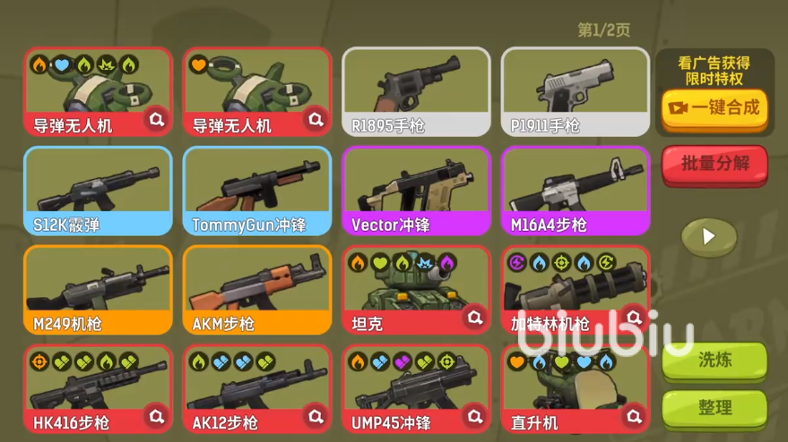 枪械升级主要依赖合成系统。游戏中所有武器统一划分为六个品质等级,品质越高,基础属性越强。通过合成可显著拓展射程、提升伤害输出及稳定性。操作方式为:将两把同等级武器进行合成,每次合成均可触发一次强化;每把武器最多可强化五次,满阶后即达当前品质上限。强化效果涵盖基础伤害提升、后坐力优化与弹道精度增强,玩家可根据战术定位灵活安排合成策略。