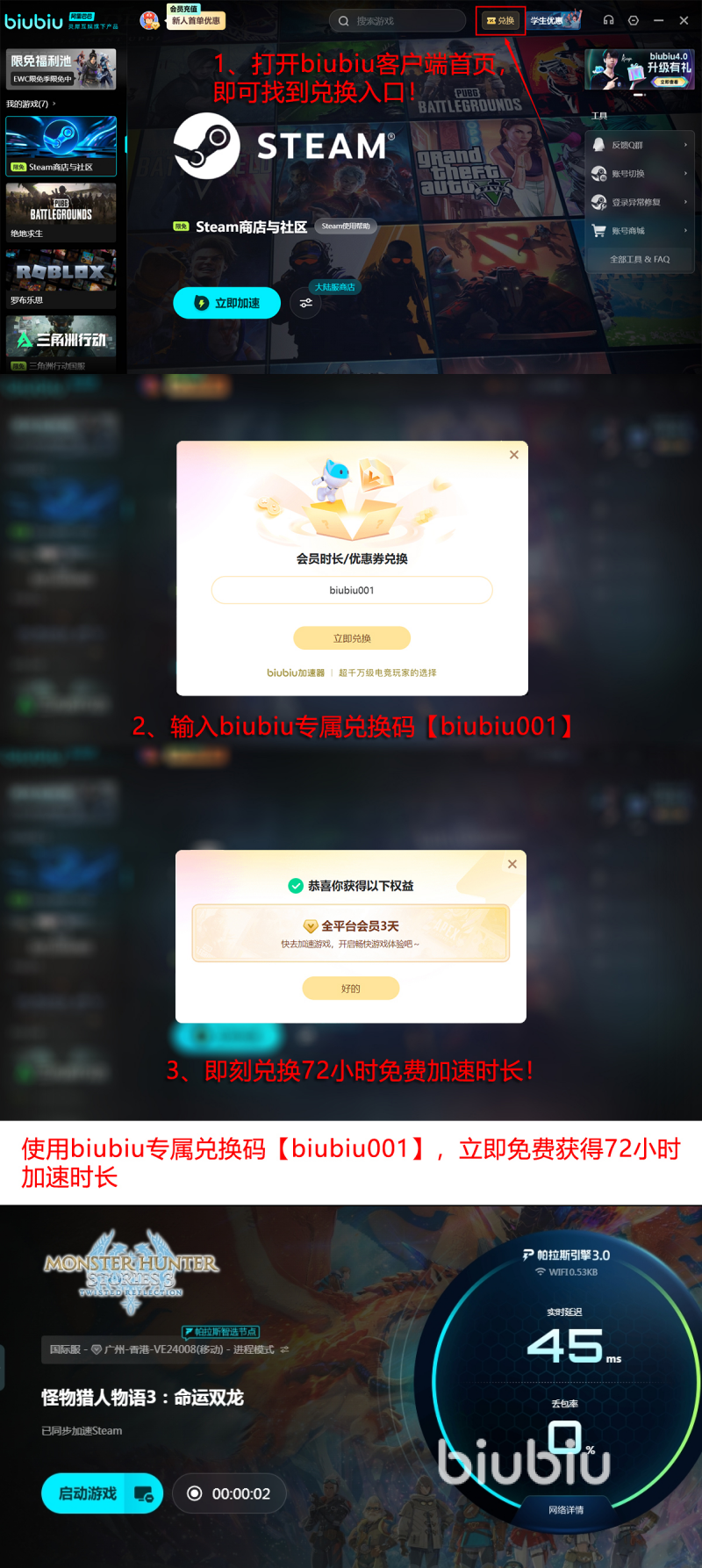 三个版本各有各的优势,如果大家想要畅玩这一款大作,稳定的网络是比较重要的。biubiu加速器靠着硬核的技术实力,就成为大家玩游戏时的主要选择,早就已经得到PUBG冠军选手小叮当的认可。电竞级别的加速标准,让游戏的操作精准响应,背靠着阿里巴巴灵犀互娱大厂技术。针对海外游戏还会打造动态多线,现在只需要复制口令【biubiu001】每一个玩家都可以获得3天免费加速时长,并不存在任何的门槛限制。新用户在首次注册登录之后,还有一个24小时礼包,搭配在一起之后就可以免费96小时。