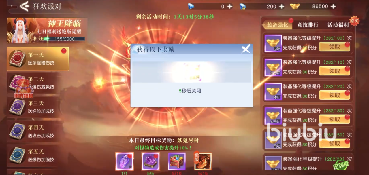测试阶段及开服初期常配套代金券发放、充值返利等运营活动,例如“充值100%返还+150%钻石”类规则,微氪玩家可借此提升资源转化效率。大部分常规玩法仍依赖时间积累,挂机系统可稳定产出基础养成材料,虽进度相对平缓,但足以覆盖全部PVE内容体验。