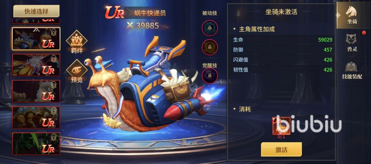 此外,吉奥诺顿、魔法飞毯、蜗牛快递员等坐骑虽非主流T0梯队,但在特定场景下具备独特价值。吉奥诺顿通过“邪恶入侵”“冰封王座”等大型活动发放碎片,觉醒技【岩甲共鸣】可在攻击时概率提升主角防御力;魔法飞毯以动态布艺建模脱颖而出,觉醒技【符文缓冲】针对暴击伤害提供爆伤减免;蜗牛快递员则以诙谐设定结合实用机制——闪避成功时概率降低目标本次攻击强度,适用于风筝流或控制链构建。