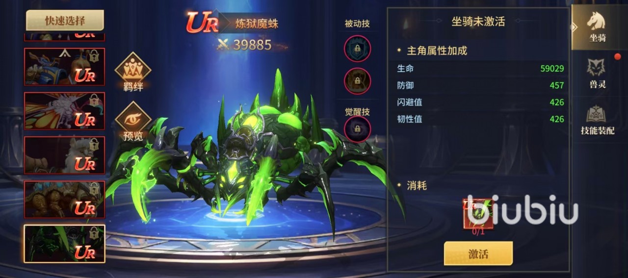 进阶玩家可优先布局炼狱魔蛛。该坐骑需在坐骑专属商店使用特定代币直接兑换,无需碎片合成,流程明确。其觉醒技【深渊反噬】触发条件为角色暴击命中,成功后同步提升伤害减免与闪避率,形成攻防一体的动态防护机制,在多变战场环境中展现出更强适应性与容错空间。