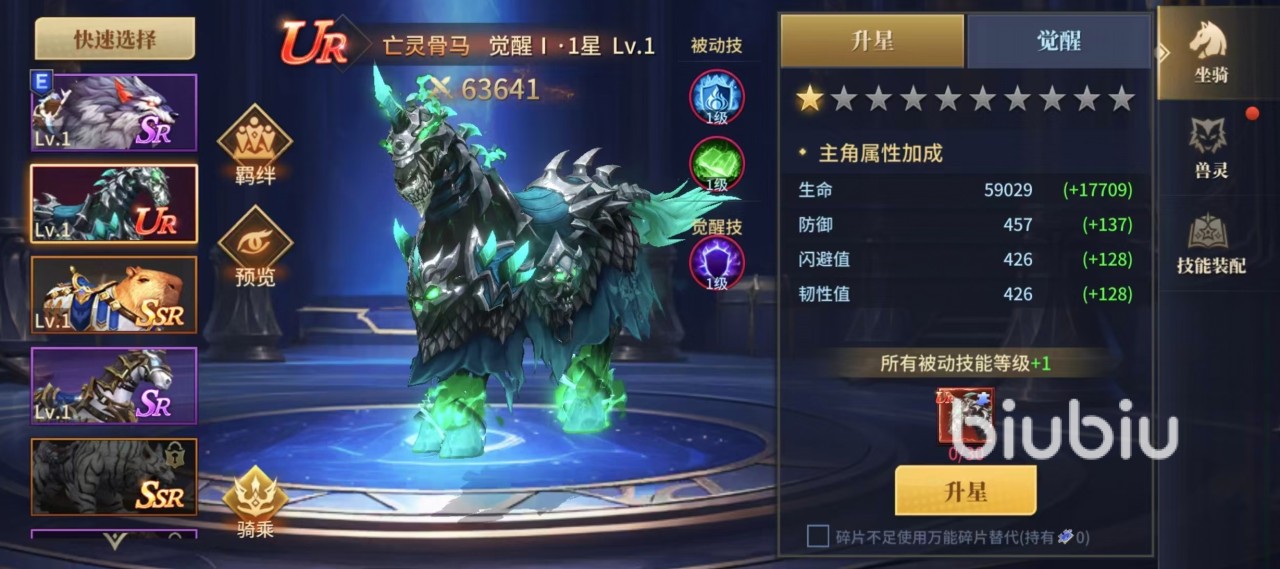 当前版本中综合表现最优的坐骑为亡灵骨马。其模型设计兼具暗黑美学与辨识度,获取途径稳定——可通过日常任务、精英副本及活动商店持续获取碎片,培养周期短。核心机制为觉醒技【骸骨庇护】:攻击命中时,有概率提升主角格挡率,显著强化近战职业(如战士、圣骑士)在高压环境下的站桩能力,属生存向刚需型配置。