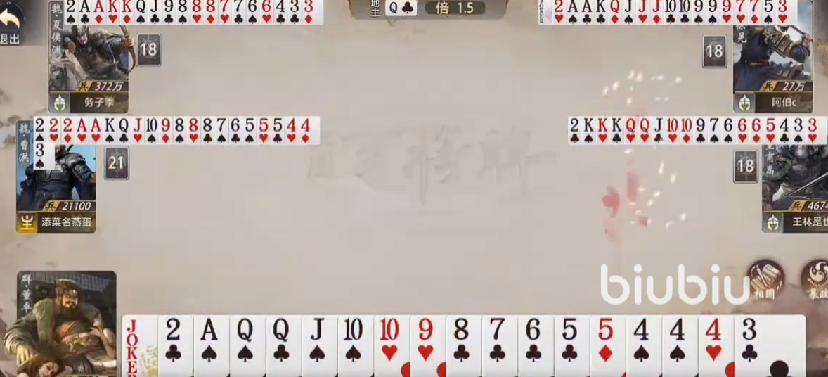 第二种为五人局,属当前主流高策略性玩法:每局随机生成2名地主,其余3人为农民阵营。胜负条件设定为“农民须合力击败场上全部地主”,或“任一地主清空手牌并存活至终局”。该模式引入身份隐藏机制——玩家初始并不知晓自身及他人阵营归属,需通过出牌行为、响应逻辑与局势演变逐步推理身份,兼具心理博弈与团队协作属性,大幅提升了策略纵深与重玩价值。