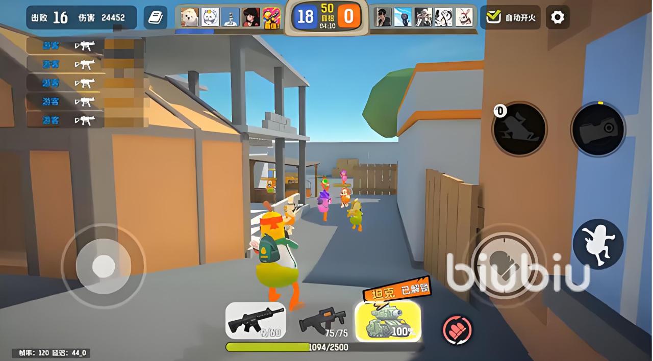 区别于传统硬核军事模拟类射击游戏,嘎嘎射击采用第三人称视角(TPS),主打快节奏、低门槛、高趣味性的多人对战体验。游戏地图为立体结构的3D盒子场景,单局支持4名玩家自由移动与实时交火。角色阵营由多种拟人化动物构成,每名选手拥有差异化技能定位;战场中随机刷新手枪、地雷、坦克等多样化载具与装备,策略组合空间广阔。