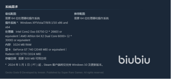 壁虎之神最低配置与推荐配置要求详解