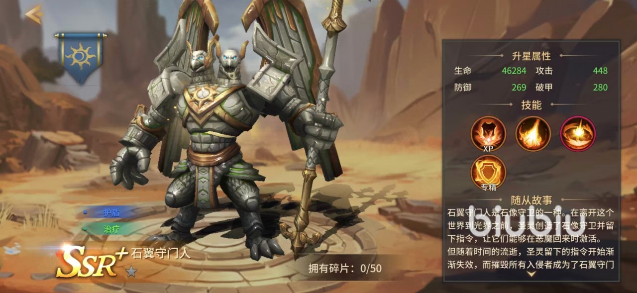 作为石像守卫分支中的高阶单位,石翼守门人拥有专属的SSR+评级加成:主动提升主角8%的伤害减免,显著强化队伍整体容错率。该效果全程常驻,无需触发条件,是其战略价值的重要基础。