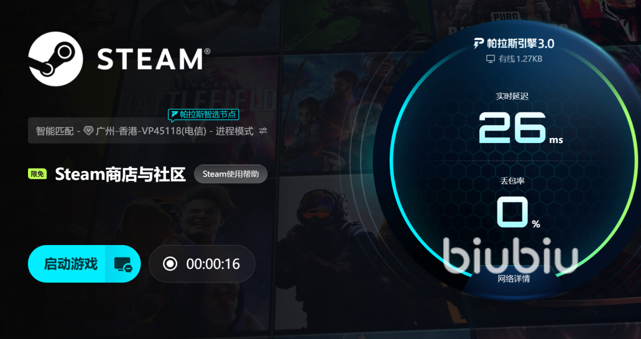 第三步:聚焦网络稳定性治理。数据显示,超68%的Steam闪退事件与TCP连接重置、DNS解析超时或UDP端口阻塞直接相关。尤其在启动商店页面、社区功能或多人游戏匹配阶段,对网络抖动容忍度极低。此时需借助专业级网络优化工具进行链路层干预。biubiu加速器采用智能路由调度机制,可动态识别并切换至低延迟电竞专线,在《绝地求生》《CS2》《Dota2》等高并发游戏中实测平均丢包率下降至0.3%以下,端到端延迟波动控制在±8ms内。其线路经职业战队实测验证,PUBG冠军选手XDD长期选用该工具进行日常训练与赛事备战。