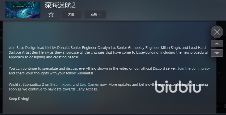 2026年03月19日 14:51 来源:猎手梓布玛游戏圈终于传来喜讯那就是《深海迷航2》终于快能体验了,作为一款经典的深海探险游戏它一直是无数玩家心中的白月光,而经过了此次游戏方的爆量相信很多人心里都踏实了不少。那么深海迷航2抢先体验上线时间爆料的具体是哪一天呢?接下来且听小编来为大家揭秘一下吧。