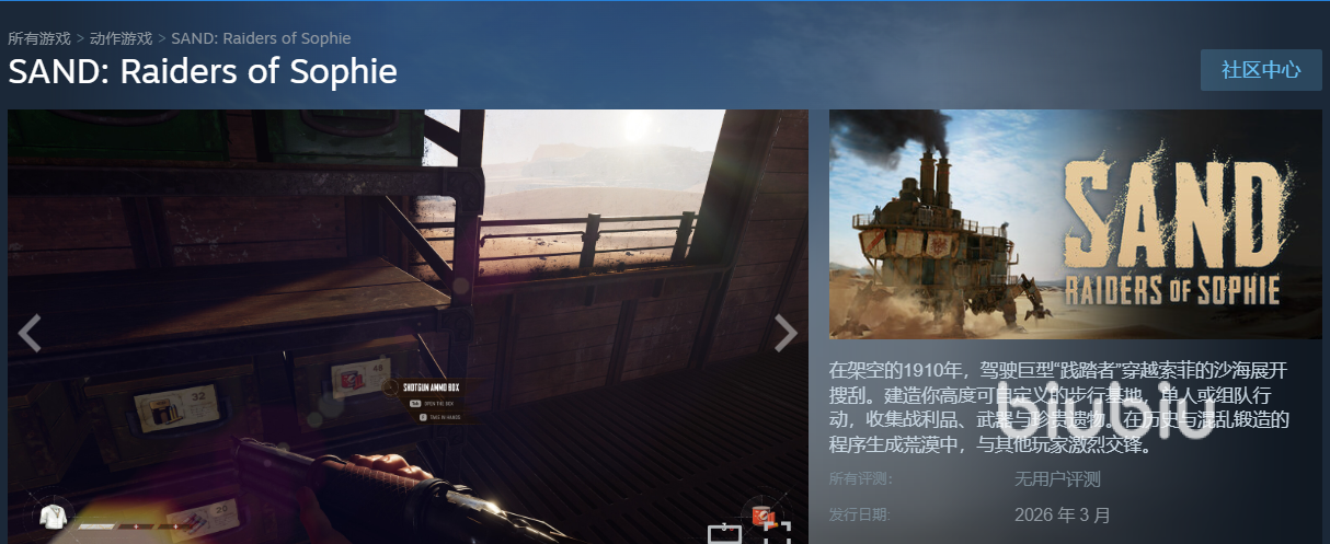 SAND索菲的掠夺者英文名就是它在steam页面上的全称,现在已经知晓答案,就能前去查看了。虽然正式版本还没有上线,但是官方公布的准确期限就是在26年3月,稍微等等就能玩到了。大家可以先将其加入心愿单,后面可第一时间得到发售消息,完成购买,开启挑战。