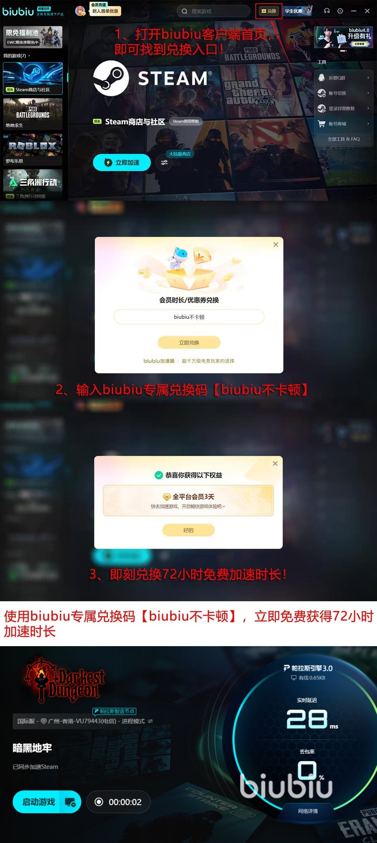 2026年03月19日 15:07 来源:春羽冰山中亥一暗黑地牢进不去游戏怎么办?该游戏有独特的暗黑美学,还设置了高难度机制,永久死亡是其中非常大的特色,这种硬核玩法也是吸引了众多玩家朋友入坑,不少朋友反映,在紧张刺激战斗时出现过闪退,甚至有时候直接就进不去游戏,这对玩家朋友们的游戏感受是有很大负面影响的,这种困扰也很影响沉浸式的游戏氛围,其实此类问题还是要先分析原因,并辅助综合性能最突出的biubiu加速器使用,从多渠道下手,在该平台的辅助下,基本就能得到良好的网络环境,接下来就一起看看具体的解决办法,大家也可做个参考。