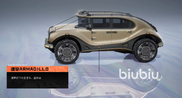 速攀ARMADILLO这款载具被大家称之为遗落旗下的吉普车。第一眼就吸引了很多的废土美学爱好者。圆润的车头搭配宽大的越野轮胎,会有粗犷的感觉,又融入了机械的质感。每一处细节其实都能传递出全能越野的信号,所以当大家在游戏的过程中就可以带来更好的效果。