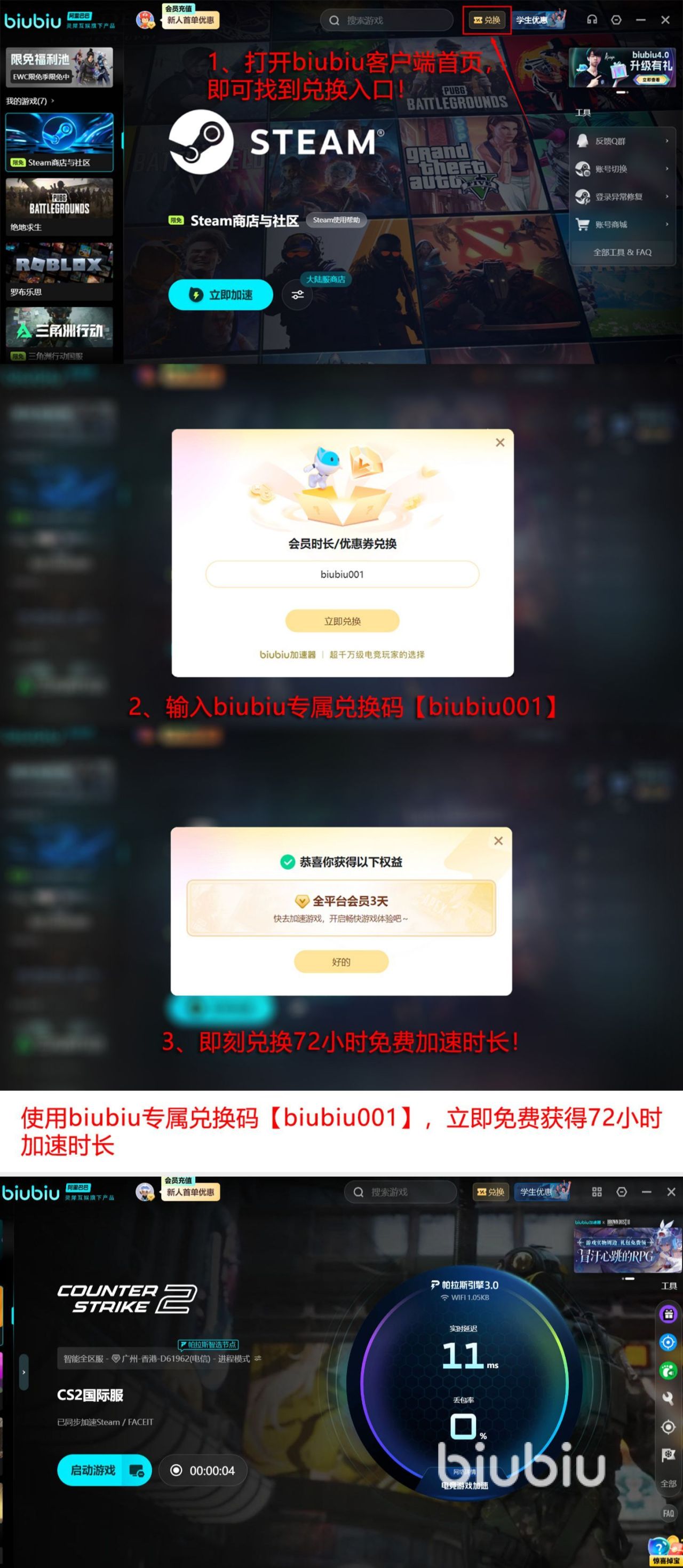 不过最引人注目,或者人们最关心的还是所拥有的福利,因为害怕在开会员之后,体验感并不是特别好,因此此工具早已经想得非常周到,给大家带来很多免费的体验福利。比如当所有人第1次注册成功之后就会立即拥有24小时的加速特权,当使用完之后,所有人还可用【biubiu001】再次额外获得三天的免费加速特权,那么在这长达96个小时中,大家可任意加速每款游戏。此工具的兼容性也特别广,覆盖了上万款不同的游戏类型。