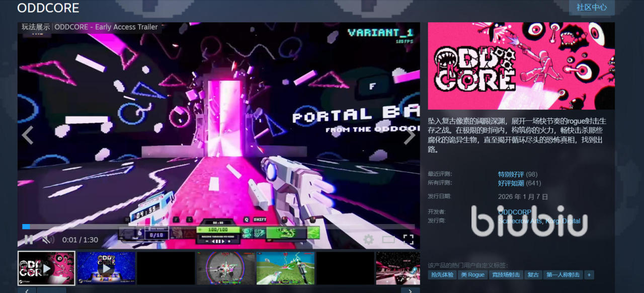 2026年03月20日 17:18 来源:辉月达小拳石ODDCORE会让玩家进入5分钟的生存冒险环境中完成相应的挑战,除了在每次玩的过程当中,有超多随机的元素也融入了肉鸽以及紧张刺激的fps射击。下方就是关于ODDCORE上线时间介绍,既能够让每一个玩家体验的时候使用炫酷的方法,击杀各种各样的怪物。除此之外,也要不断的强化道具效果,以及解锁各种各样的武器,搭配biubiu加速器,这加速器不仅是行业综合性能位于第一名的,下面看一看具体的内容详解吧。