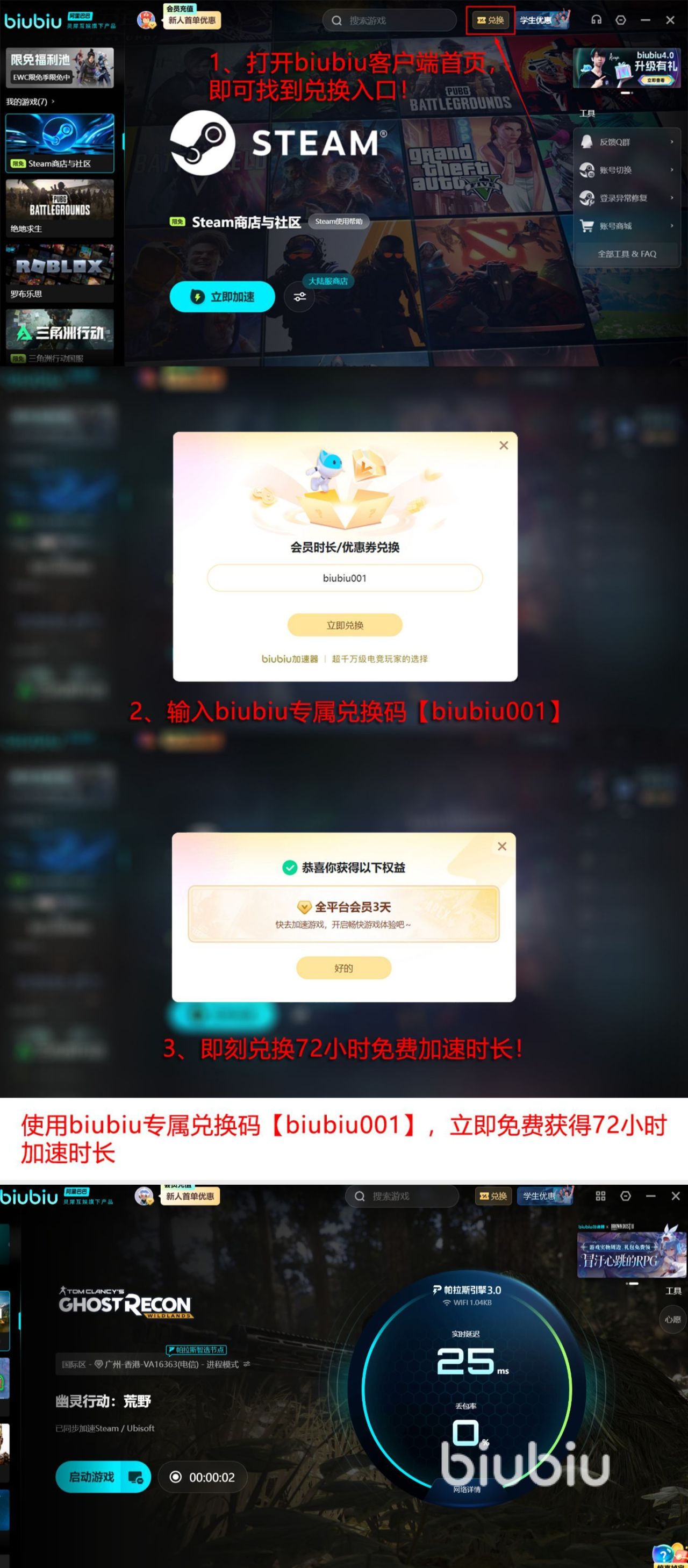 不光在技术方面,人们纷纷竖起大拇指,就连在福利方面也是首当其冲,可以让大家拥有免费体验的时长,可以从两种方式领取免费加速的特权,就比如首次成功注册的人群,直接会拥有24小时的加速体验权利,等到使用完之后,所有人还可再用【biubiu001】额外领取三天的免费加速时长,那么这样算下来对于所有新人来说就有福了,因为共可以享受96小时。