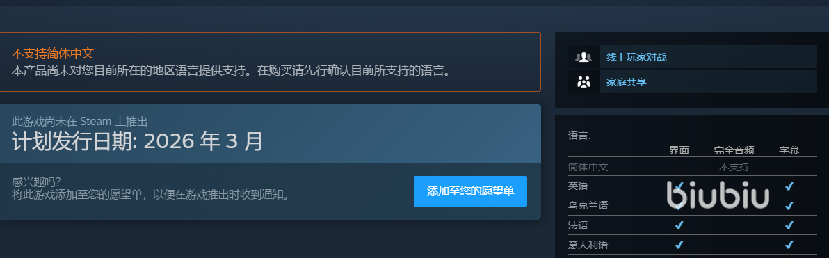 目前官方合作的平台还是比较多的,有ps,Xbox以及PC端。我们现在登录steam,就能看到相关游戏信息,其中售价暂时还没有公布,不过发售日已经定在了26年3月份了,就是这个月会跟大家正式见面,也就这几天将会告诉各位正式版价格是多少,届时本站会同一时间分享。大家现在可以先将其加入心愿单,等待购买。