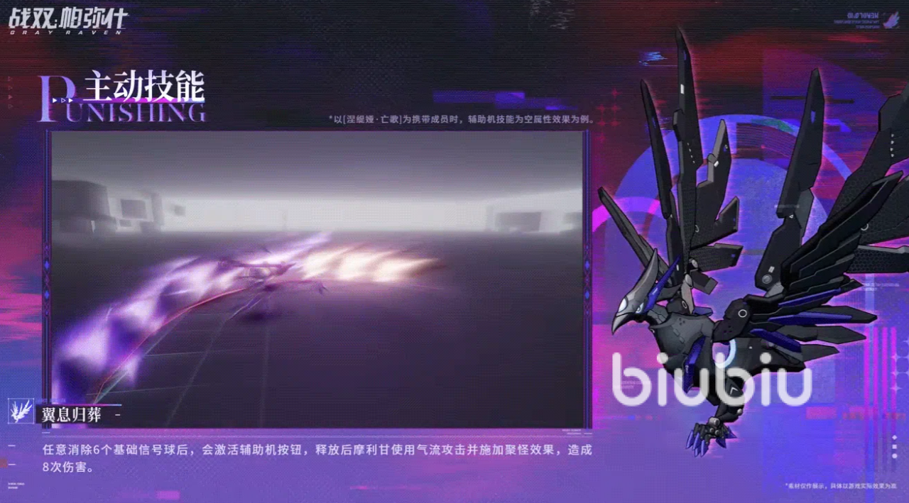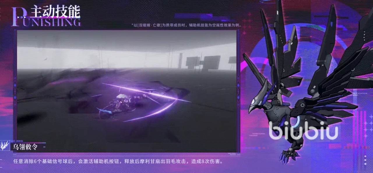 摩利甘配备两个可切换主动技能,均需通过消除6个基础信号球并点击辅助机按钮释放。“乌翎敕令”以高频单点打击为核心,释放后对目标连续造成8次伤害,适用于高集中度输出场景,如Boss战或单体压制需求明确的关卡。