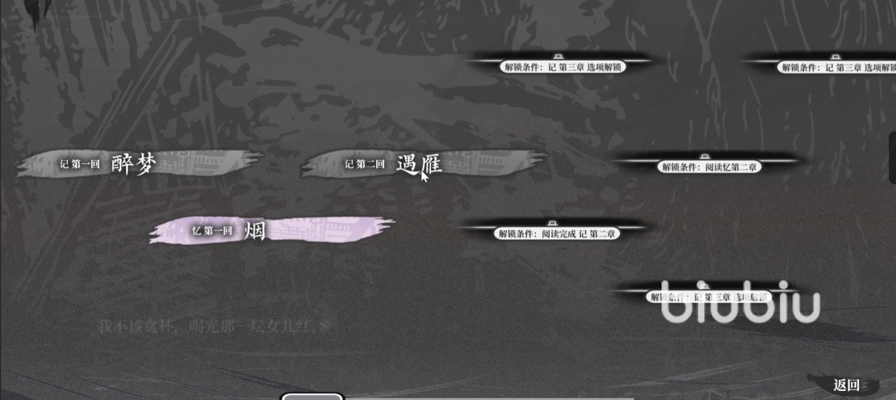 游戏机制深度服务于主题表达。“记第二回·遇雁”与“忆第二回·雁”构成首组情感锚点:现实中主角遭遇决定生死走向的关键NPC或事件;记忆中“雁”作为核心意象,承载离别、守望与不可抵达的温柔,成为乱世中唯一未被磨蚀的精神坐标。紧随其后的“记第三回·搜刮”则直面生存残酷性——资源极度稀缺环境下,玩家必须在有限回合内权衡取舍,任一判断失误均可能导向鹰妖吞噬、狼妖围猎等不可逆坏结局,真实还原明末底层个体在系统性崩塌中的脆弱性与无力感。