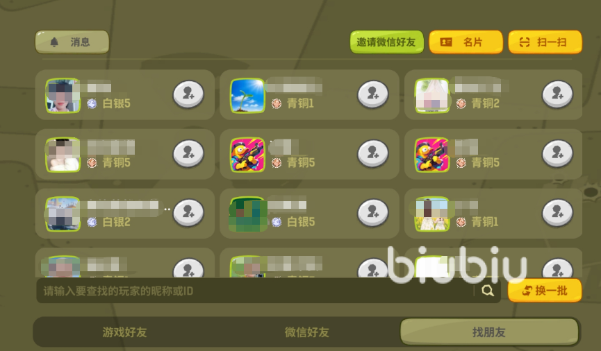 “好友”页面分为三大板块:已添加好友、历史对局玩家、全服游戏爱好者。点击底部“找朋友”,即可进入全局搜索页。在此输入目标玩家的昵称或完整ID,系统将实时匹配结果。确认身份后发送申请,对方通过后即可建立好友关系,后续可随时发起组队邀请,共同参与实时PVP挑战。