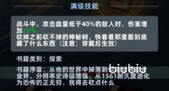 该道具附带两项核心特性:一是专属技能,穿戴后可砍伐此前无法破坏的神秘树,从而开启全新隐藏地图区域;二是在战斗中,对生命值低于40%的目标造成额外28%伤害,兼具资源采集与战术输出双重价值。耐久属性尤为突出——初始值为1561,经进化后趋近无限,彻底规避频繁更换工具带来的操作中断与资源损耗。在末日生存逻辑下,这种高可靠性与高复用性,正是理想道具的核心标准。