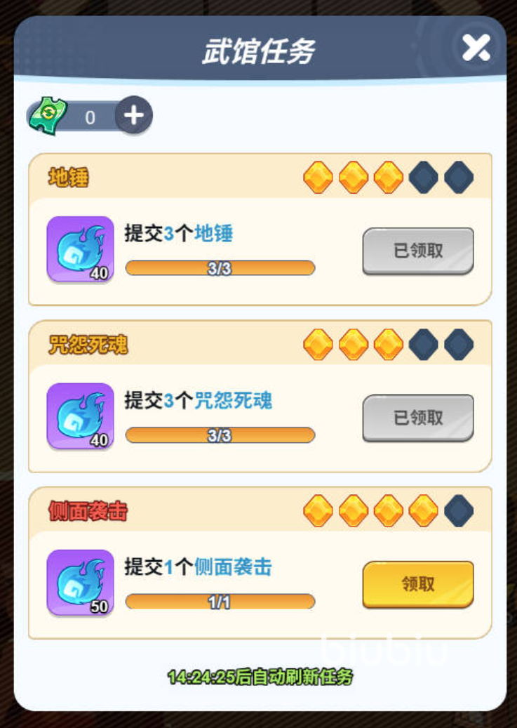 日常任务作为武馆稳定资源来源,其品质筛选至关重要。每日刷新任务时,务必多次重置直至出现橙色及以上品质任务——高品质任务不仅提供更丰厚的符箓材料、天赋经验,更重要的是产出大量潜能点。潜能点是角色突破瓶颈的核心资源,其战略价值远高于单次招式熟练度提升。因此,获得新招式后,应优先使用任务奖励兑换潜能点,再逐步推进招式熟练度成长。