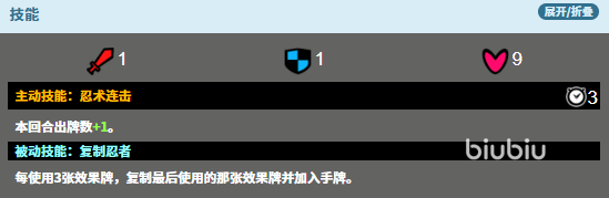 其被动能力依赖“三连效果牌”触发:连续打出3张效果类手牌后,第3张将被完整复制并加入当前手牌库。该复制动作不消耗额外行动,且复制卡牌即刻可用。值得注意的是,该机制对出牌顺序有明确要求——仅第3张效果牌可被复制,前两张仅作为触发条件存在,因此构建手牌序列时需预先规划卡组构成与使用节奏。