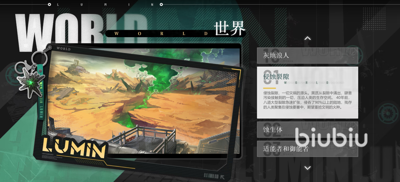 《绿梦:时空之声》构建于虚构星球“哈洛”之上。灾变前,该文明在空间迁跃与能量转化领域达到巅峰,城市悬浮、时序可控、生态高度智能化。然而,“大侵蚀”事件彻底颠覆了这一切——时空结构崩解,地表约90%被不可逆侵蚀,地貌错乱叠加,时间流出现局部停滞、倒流与折叠现象。伴随而来的黑质粒子污染,致使大量生物基因畸变,演化为具有高攻击性与环境适应力的“蚀生体”,成为废土世界中最危险的生存威胁之一。