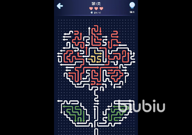 本作采用单指点击操作逻辑,玩家只需轻触屏幕上的箭头图标,其便会沿所指方向直线滑动,直至触碰障碍物或完全移出边界——后者即为成功消除。关卡设计以几何结构为基础,初期以横竖直线布局为主,逐步引入环形路径、交叉轨道、多向联动等进阶元素,难度曲线平缓自然,兼顾新手引导与长期挑战性。
