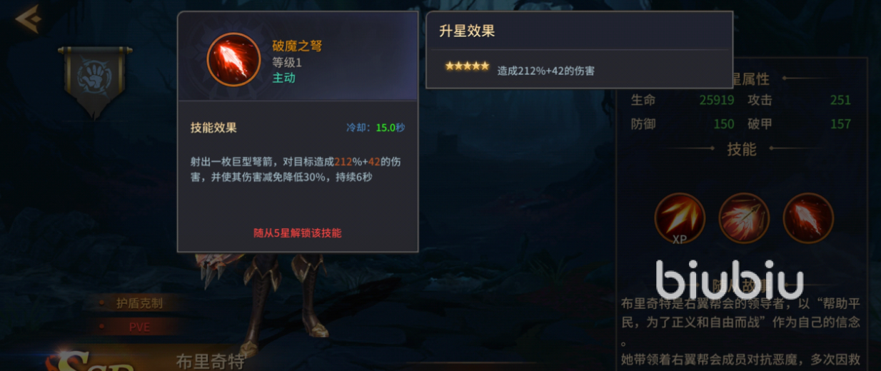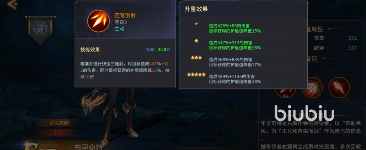 二技能“破魔之弩”是布里奇特的关键爆发点,需手动施放,仅在角色达到5星后解锁。该技能不仅造成高额单体伤害,更附带持续10秒的30%防御削减效果。这一减防机制显著放大全队后续所有伤害的实际收益,使她从单一输出者升级为团队整体DPS跃升的催化剂。在Boss战进入关键阶段时,精准释放该技能往往能直接打破敌方防御节奏,成为扭转战局的核心操作节点。