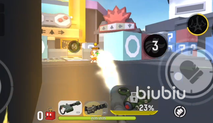 换枪操作极为直观:对战准备阶段,玩家可在武器库中自由搭配三把主战枪械,顶部位置为默认初始持枪;进入地图后,点击屏幕下方对应武器图标即可瞬时切换,无需暂停或菜单跳转。不同枪械具备差异化性能——狙击枪专注中远距离精准点杀,冲锋枪强调近身连射节奏,霰弹枪则在贴身交火中拥有高爆发与范围压制能力,部分型号命中后还可触发爆炸反馈。配合左侧虚拟摇杆移动视角、右侧射击键开火,以及自动蓄力射击机制,整套操作逻辑清晰易上手。