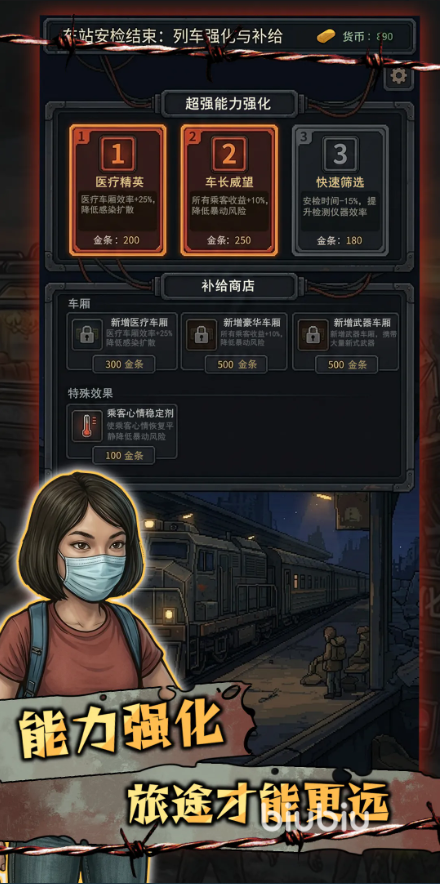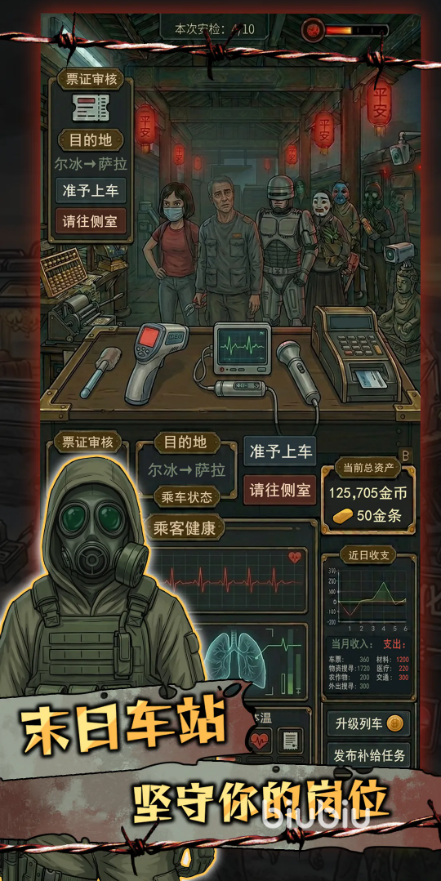 区别于传统硬核生存玩法,《我在末日开火车》更侧重系统化经营逻辑。玩家需在物资配额受限前提下,统筹安排燃料补给、防护涂层维护、净水装置运行等关键环节;同时通过环境扫描识别感染风险区域,规避接触高危污染源,保障列车乘员安全。