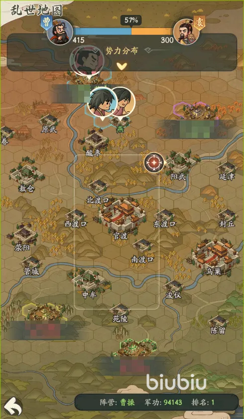 战场配置四大兵种:弓兵、骑兵、盾兵、矛兵,各具克制关系与地形适配特性。联盟指挥官需根据敌我布防、渡口状态及乌巢控制情况,动态调配部队组合与进攻路线。地图核心结构包含官渡主城及四个关键渡口——白马、延津、仓亭、黎阳,四者通过栈道互联,既可直取官渡,亦可通过侧翼压制相邻渡口实现战略牵制。