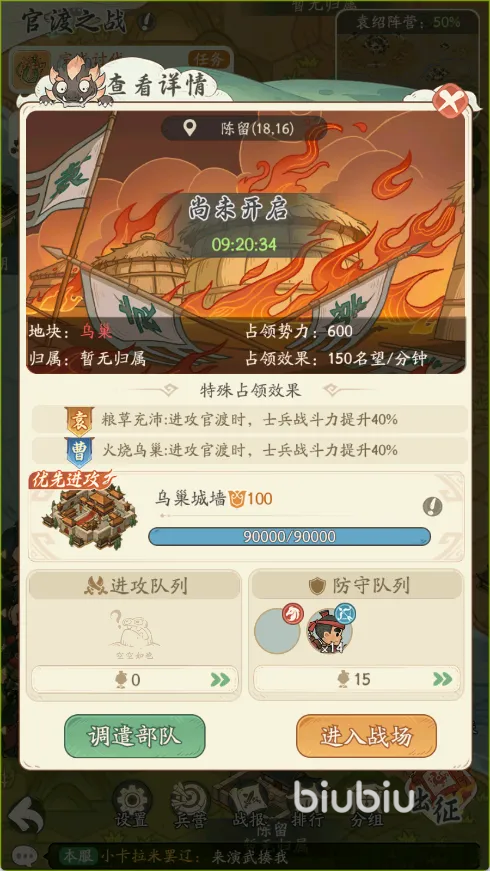 乌巢为全局战略支点,率先占领乌巢的一方,将获得对官渡主城的攻城状态增益效果,显著提升攻城效率。每日结算时,系统依据双方阵营总势力值判定当日胜负;若势力值相同,则以成功攻占官渡的阵营为胜方。获胜阵营下所有联盟成员,在当日军功排名计算中将获得额外加成系数。