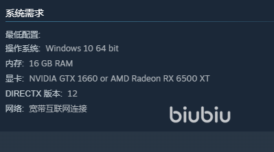 根据官方已公布的系统需求,该游戏整体配置门槛较为亲民,绝大多数当前在用的PC设备均可满足基础运行条件。最低操作系统要求为Windows 10(64位),属于当前主流游戏的通用标准。虽未明确列出CPU型号,但结合同类3A级轻量作品的适配逻辑,Intel Core i5系列或同性能AMD处理器即可胜任。