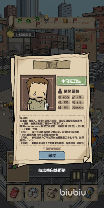 游戏流程具备强目标导向性:从初始天台突围出发,逐步建设防御据点,招募并培养不同能力的“兄弟”角色,持续积累资源,最终组织反攻行动,夺回校园控制权。主线清晰、阶段明确,无冗余引导或拖沓环节,整体推进高效流畅,契合现代用户对“即点即玩、短时有反馈”的使用期待。