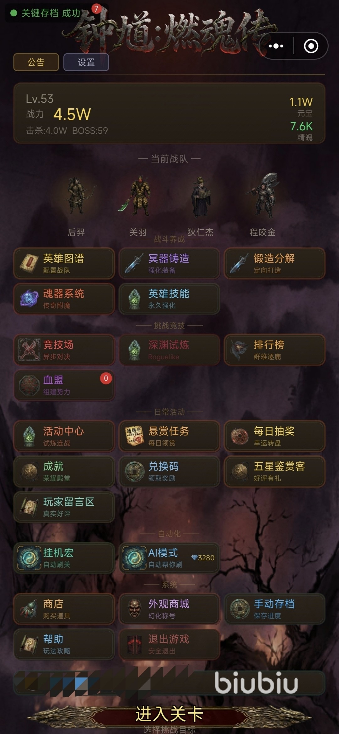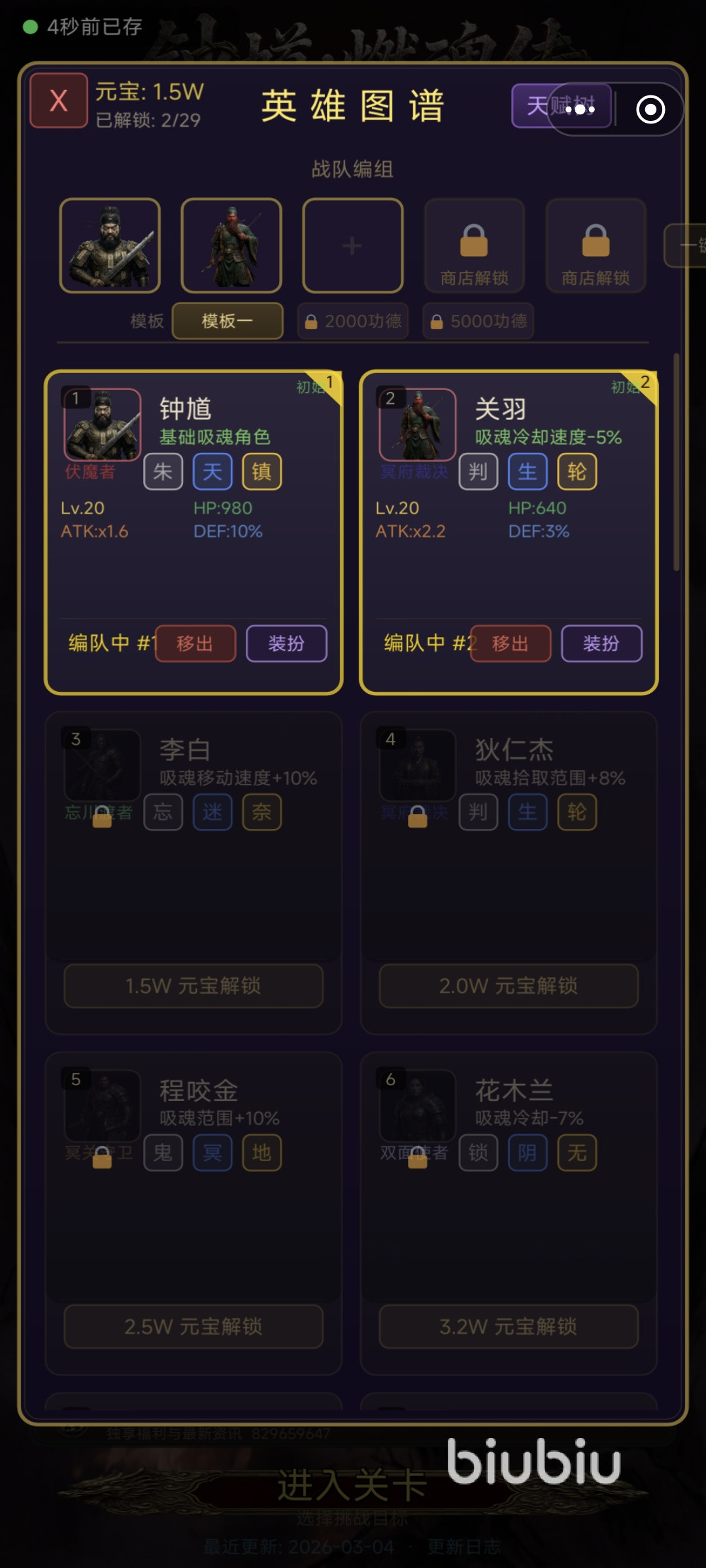 玩家需依据英雄间的属性克制关系、技能联动逻辑及关卡机制特点,动态组建高适配度的战斗阵容。所有英雄初始仅解锁基础技能,后续可通过通关挑战、事件抉择与战斗结算获取资源,在商店中刷新并购置进阶技能、稀有装备,实现战力持续成长。